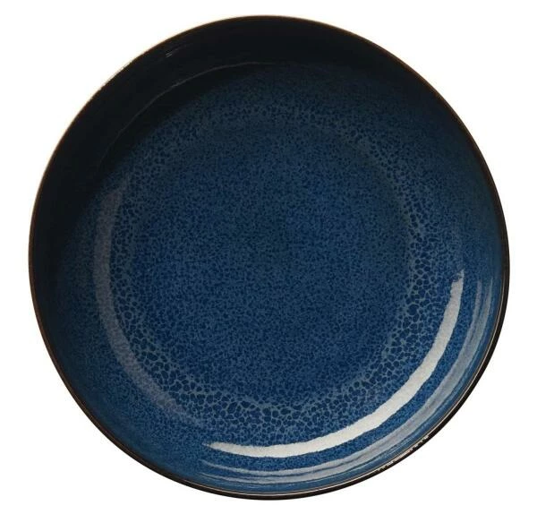ASA Pasta-/ Suppenteller Saison midnight blue, 21 cm. Tiefer Teller in dunkler, blauer Farbe mit schwarzen Tupfern. Zum Servieren von Suppen und Nudelgerichten geeignet.