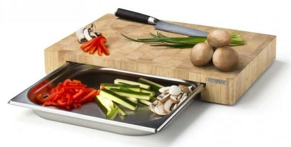 Continenta Schneidebrett Aus Gummibaum Stirnholz Mit Schublade 48 X 32,5 X 6 Cm