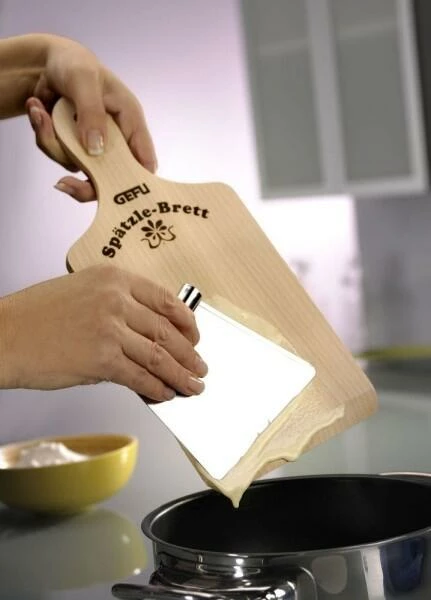 GEFU Spätzleschaber. Spätzle direkt über dem Topf zubereiten auf die klassische Art der Spätzlezubereitung.