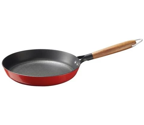 Küchenprofi Bratpfanne Country in rot. Bratpfanne aus Gusseisen mit rustikalem Holzgriff.