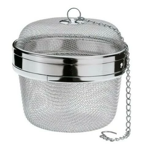 Küchenprofi Gewürzkugel. Zum Aufbrühen von Tee oder Würzen von Suppen. Mit Edelstahlkette zum sicheren Befestigen am Topfrand.