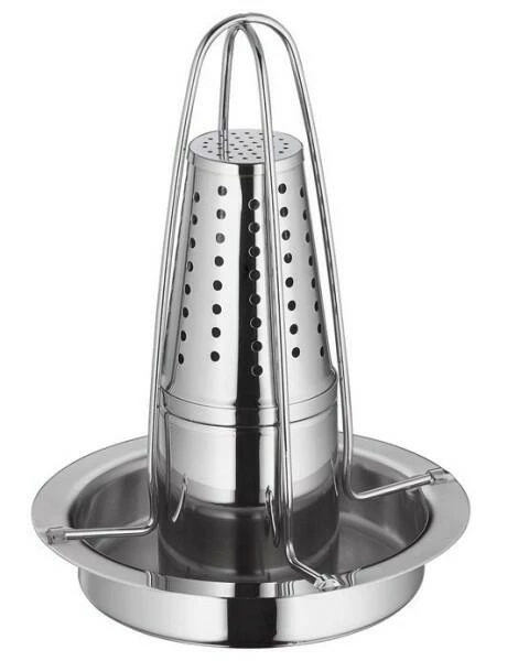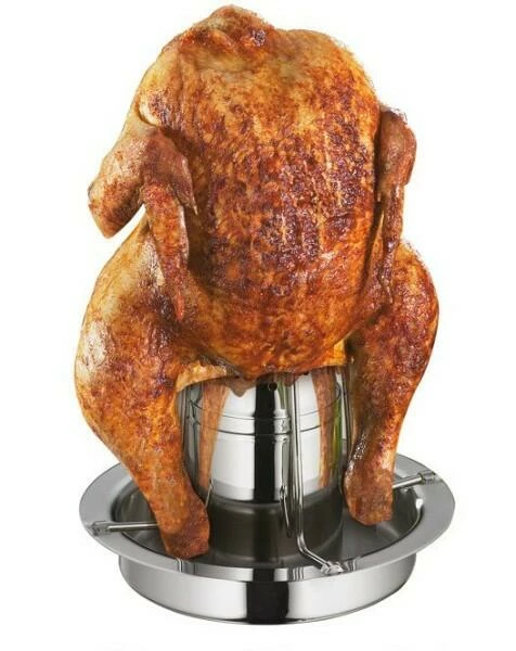 Einfache Anwendung, fettfreies Braten, rundherum gleichmäßig knusprig: Befüllen Sie den Behälter mit Bier, Weiß-/Rotwein oder anderen Flüssigkeiten und verfeinern sie mit Marinaden, Kräutern oder Säften. Bei ca. 180 Grad braten oder bis eine Kerntemeperatur von ca 80/85 erreicht ist.