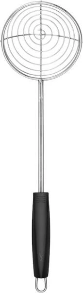 Denn der Seihlöffel sorgt mit seiner Länge von 39 cm dafür, dass Ihre Hand aus der Reichweite der heißen Spritzer ist. Er eignet sich aber nicht nur zum Herausheben von frittierten Speisen. Auch Taschen aus Nudelteig, wie schwäbische Maultaschen, Gnocchi, Tortellini oder Pelmeni, oder Knödel können Sie wunderbar aus dem heißen Wasser schöpfen. Ebenso ist der Sieblöffel zum Blanchieren von Gemüse geeignet. Und bildet sich beim Kochen von eiweißhaltigen Nahrungsmitteln Abschaum, können Sie ihn als Schaumlöffel nutzen.