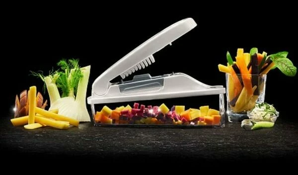 - schneidet schnell und mühelos Würfel und Stifte aus Obst und Gemüse