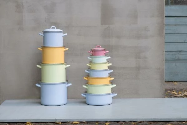 Bei der Pastellfarben-Serie von Riess wird auf buntes Farbenspiel gesetzt. Der hohe Fleischtopf mit 20 cm Durchmesser ist in gelb erhältlich, in pastell-blau finden Sie Töpfe mit 18 und 24 cm Durchmesser und den passenden Abschluss bildet der Topf in pastell-grün mit 22 cm Durchmesser. Die Deckel für die Töpfe von Riess sind in allen Größen farblich passend separat erhältlich.