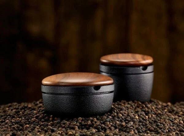 Skeppshult Pfeffer- & Kräutermühle Kleiner Swing in walnuss. Die gusseiserne Kräuter- und Pfeffermühle mit einem Deckel aus edlem Walnussholz. In der kompakten Version zum Mahlen von kleineren Mengen Pfeffer und Kräuter.
