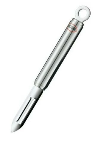 Rösle. Durch den schmalen Spalt der scharfgeschliffenen Klingen kann Obst und Gemüse behutsam geschält werden. Mit der geschliffenen Spitze können zusätzlich schadhafte Stellen schnell entfernt werden. Für Rechts- u. Linkshänder und Arbeiten von und zum Körper.