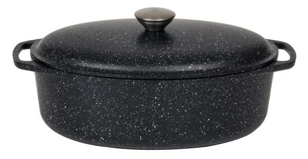 SSW Schlemmerbräter Rosso aus Alumiumguss in stone look. Ideal für fettarmes, gesundes Braten und Schmoren, ob im Ofen oder auf dem Herd.