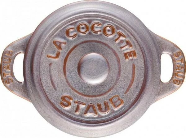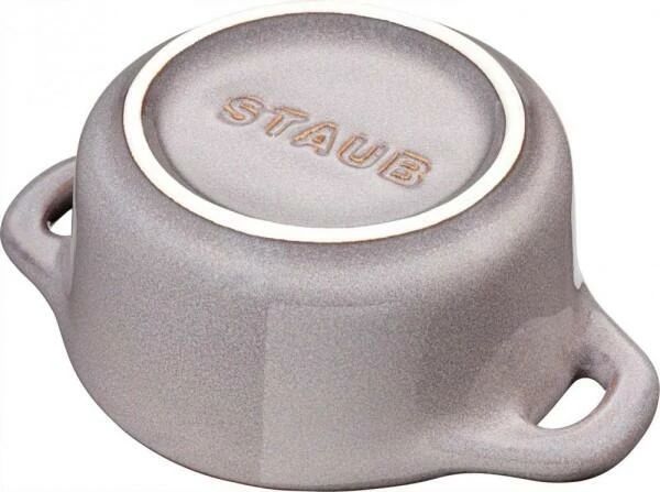 Staub Mini Cocotte in antikgrau. Diese hübsche Cocotte aus Keramik ist bestens geeignet für das Zubereiten und Servieren von kleinen Portionen.