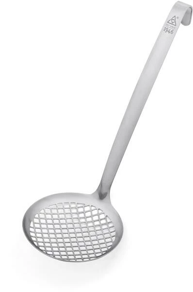 Zu der Serie „1946“ ihr gehören Küchenhelfer für jeden Tag, sämtlich neu durchdacht und einzigartig in ihrer Handhabung. Aus gebürstetem 18/10 Edelstahl und mit einer massiven Materialstärke sind sie unverwüstlich und bestreiten den rauen Gastronomiealltag ebenso souverän wie sie am Buffet und im Haushalt durch Ihre Formschönheit beeindrucken. Alle Teile der Serie wurden auf den Prüfstand gestellt und in ihrer Funktion optimiert. Suppen- und Saucenkelle gießen tropffrei, Wender und Löffel sind stark und ergonomisch und der Schaumlöffel sorgt durch große, eckige Löcher für perfektes und verstopffreies Ablaufen von Flüssigkeiten. Eine weitere Besonderheit sind die beiden flexiblen Wender aus Edelstahl und Nylon. Ihre Laffe ist sehr dünn, aber dennoch stabil und hochflexibel. So gleiten sie leicht unter empfindliche Speisen wie Spiegelei, Jakobsmuscheln oder feines Gebäck und heben und wenden ohne Bruchgefahr. „1946“ vereint triangles Kernwerte Qualität, Funktionalität und Nachhaltigkeit in Perfektion. Und so wäre auch Firmengründer Erwin Hill, der 1946 den Grundstein zu triangle legte, stolz auf diese Serie gewesen und hat so zu ihrem Namen inspiriert. Rostfrei und spülmaschinengeeignet.
