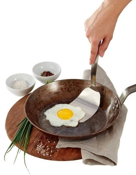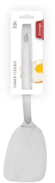 Die Laffe des hochflexiblen Wenders 1946 ist hauchdünn, aber dennoch stabil. So gleiten sie leicht unter empfindliche Speisen wie Spiegelei, Jakobsmuscheln oder feines Gebäck und heben und wenden ohne Bruchgefahr. Zur Serie 1946 gehören Küchenhelfer für jeden Tag, sämtlich neu durchdacht und einzigartig in ihrer Handhabung. Aus gebürstetem 18/10 Edelstahl und mit einer massiven Materialstärke sind sie unverwüstlich und bestreiten den rauen Gastronomiealltag ebenso souverän wie sie am Buffet und im Haushalt durch Ihre Formschönheit beeindrucken. Alle Teile der Serie wurden auf den Prüfstand gestellt und in ihrer Funktion optimiert. SuppenSaucenkelle gießen tropffrei, Wender und Löffel sind stark und ergonomisch und derSchaumlöffel sorgt durch große, eckige Löcher für perfektes und verstopffreies Ablaufen von Flüssigkeiten. Für beschichtete Pfannen gibt es den flexiblen Wender auch mit schonendem Nylon. „1946“ vereint triangles Kernwerte Qualität, Funktionalität und Nachhaltigkeit in Perfektion. Und so wäre auch Firmengründer Erwin Hill, der 1946 den Grundstein zu triangle legte, stolz auf diese Serie gewesen und hat so zu ihrem Namen inspiriert. Rostfrei und spülmaschinengeeignet.