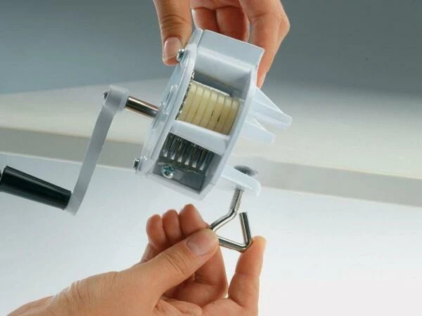 Westmark Bohnenlangschneider. Die Messerrolle mit 6 Klingen schneidet die Bohnen sehr effizient der Länge nach auf.