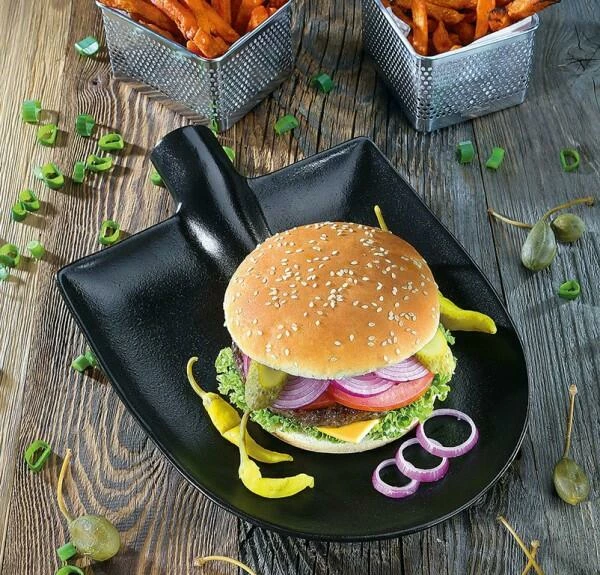 Saftiges Fleisch, leckere Burger, aber auch Fisch und Gemüse lassen sich auf den einzigartigen Tellern stilvoll servieren. Das innovative Design sowie die rustikale, raue Haptik machen die Steak-und Servierteller WORKER zum idealen Geschirr für eine gelungene BBQ-Party mit Freunden und Familie. Ob zum Zubereiten oder Warmhalten, die robusten Keramikteller ’Made in Portugal’ lassen sich auch hervorragend im Ofen oder auf dem Grill bei indirekter Hitze einsetzen.